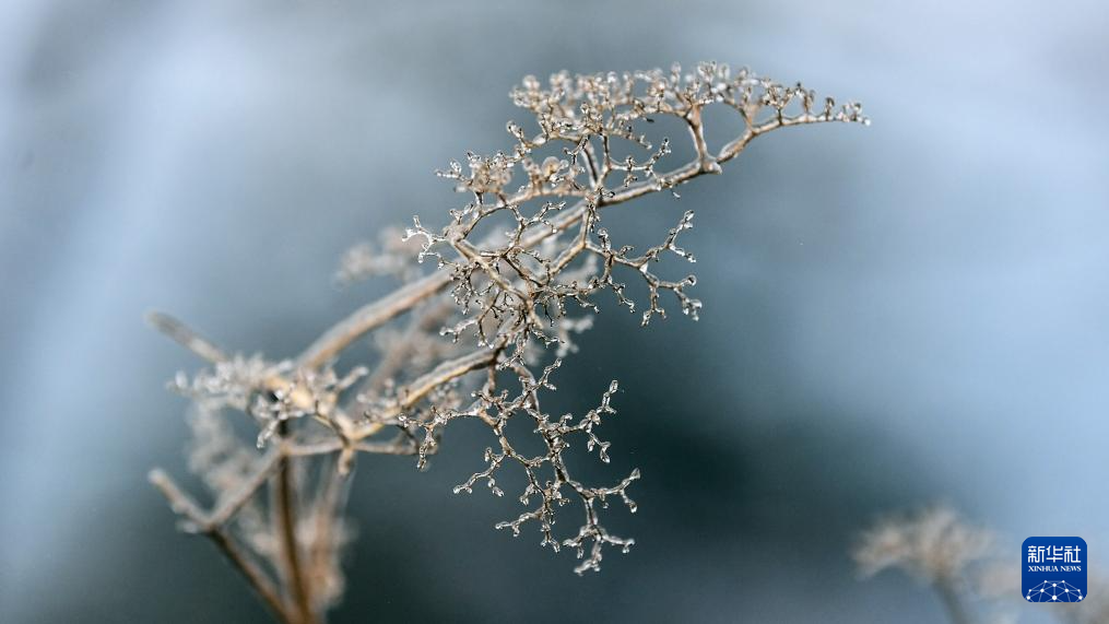 这是1月21日在三江侗族自治县大塘坳水库附近拍摄的被冰凌包裹的花朵。