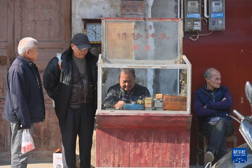在柳州市柳江区百朋镇集市,人们在修手表(1月13日摄)。