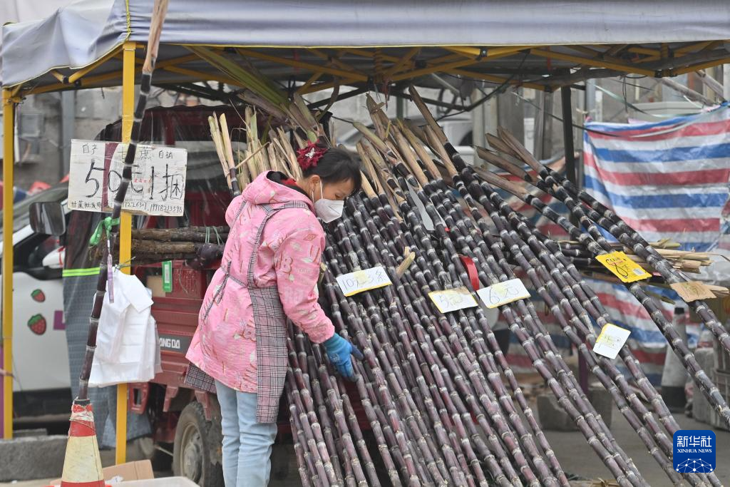 人们在柳州市柳江区百朋镇集市选购甘蔗(1月13日摄)。