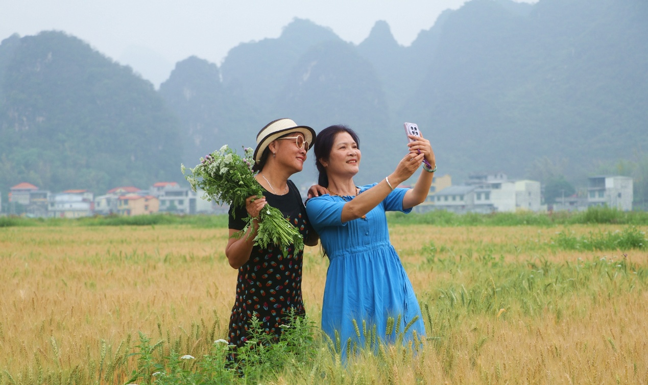 “太壮观了,我特意从市区过来的,没想到百朋镇不仅荷花有名,麦田也这么美。”正在麦田边拍照的游客赖自真说。漫步田埂的游客李晓曲说:“这里空气清新、景色宜人,让人身心愉悦,我要推荐给更多朋友,一起来享受这片田园美景。”