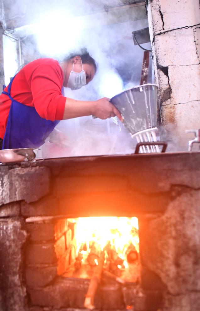 3月25日,工作人员在制作滤粉。