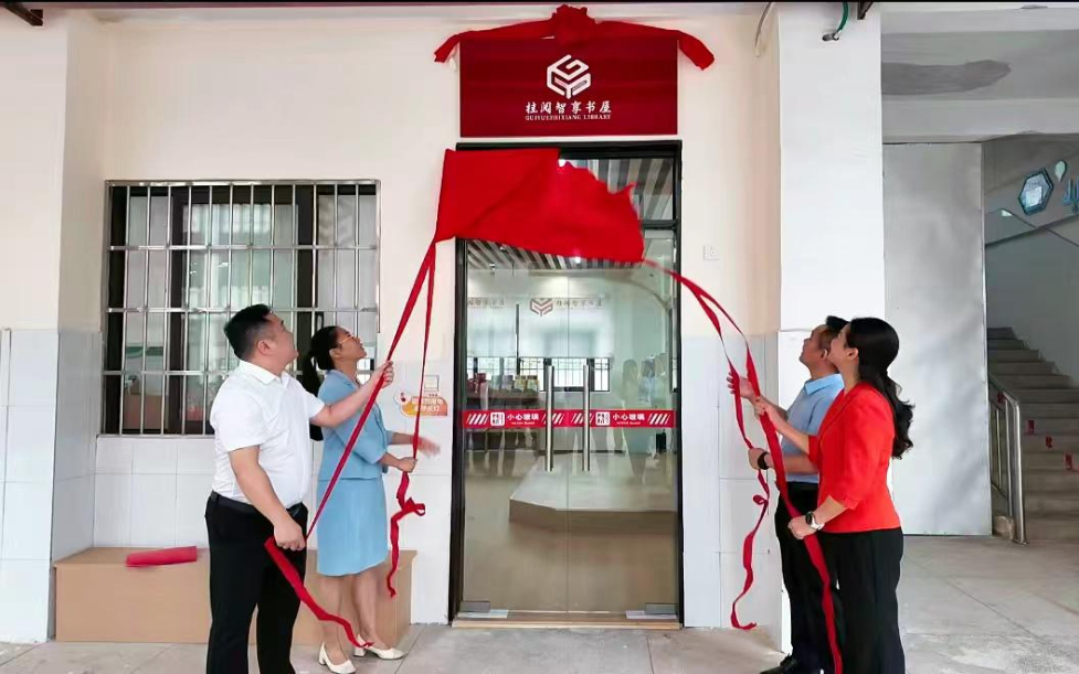 当天下午,博白镇第八小学与博白县新华书店携手共建的“桂阅·智享书屋”正式揭牌启用。这是推广全民阅读,建设“书香校园”的生动实践,也是“文化塑城”向校园延伸的重要阵地,目前书屋已上架图书2000余册,涵盖文学、艺术、人文社科、自然科学等多个领域,可同时容纳60余名学生阅读。书屋配备自动化借阅系统与后台数据分析平台,学生们可凭借阅卡博览群书,并实现借阅数据的实时反馈和科学分析。