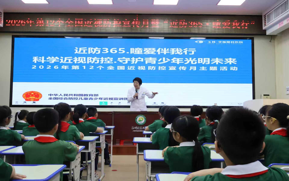 近日,玉林华厦眼科医院组织专家先后走进玉林市玉州区金港小学、东环小学,开展以“近防365,瞳爱伴我行”为主题的近视防控知识讲座,为孩子们送上一堂生动实用的护眼科普课。